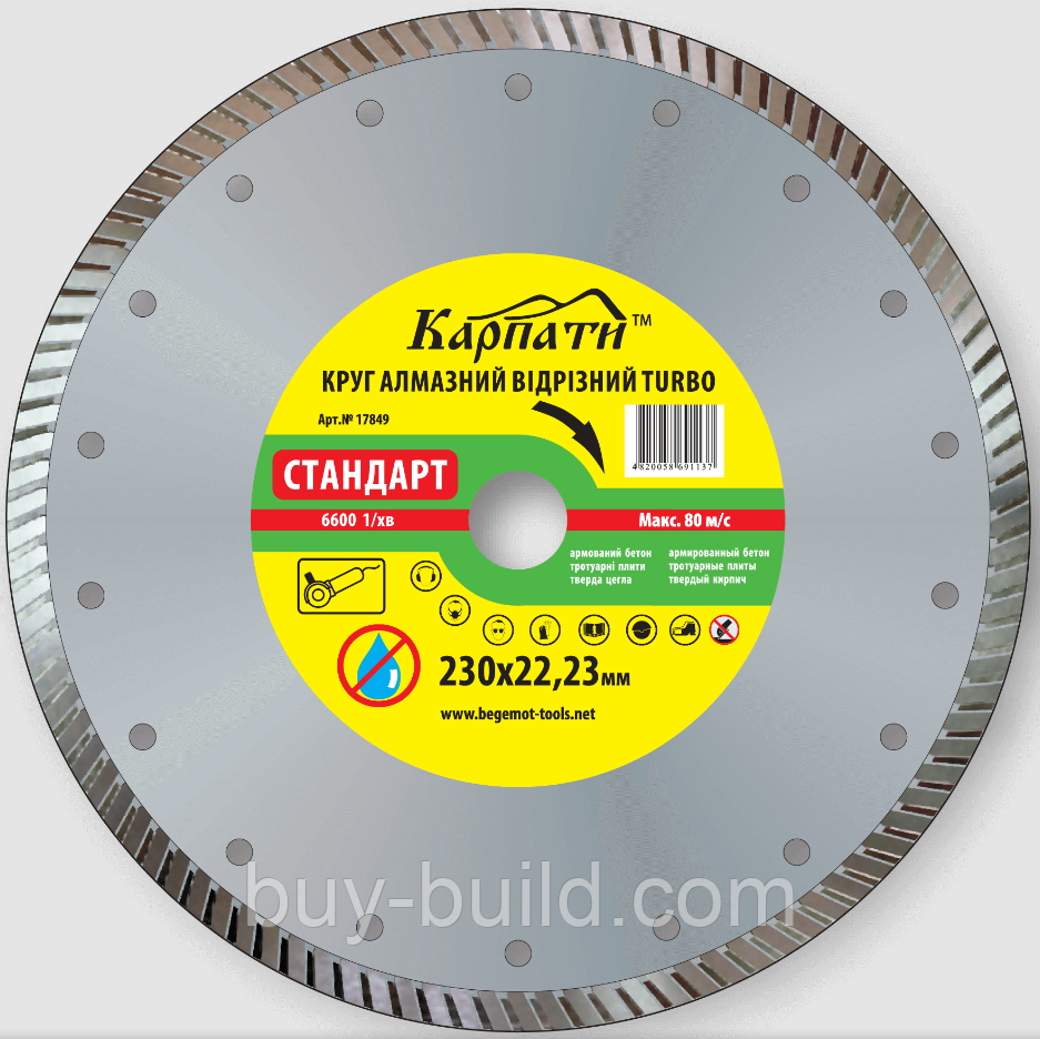 Диск Карпати алмаз (турбо) стандарт 230х2,4мм 1/25 шт/упак 17849